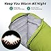 ✅【Waterproof & Windproof Design】The outer shell was made from ripstop 290T nylon, treated with a durable water-repellent (DWR) finish to shrug off moisture. Moreover, anti-snag SBS zipper ensures durable use, half-circle hood with adjustable drawstring keeps your head warmer under extreme conditions. Thus, you will get a comfortable and relaxing sleep experience on each trip.