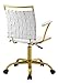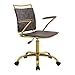 LASTING COMFORT - Made comfortable with sleek angled armrests and a padded contoured seat covered in faux leather, this chair sits on a gold-plated hooded base, complementing the webbed backrest