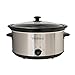 6.5-quart, oval-shaped, stainless-steel slow cooker with removable black ceramic insert, large enough to cook food for a crowd and goes right to table for serving.