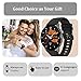 【True AMOLED & Energy Saving】Our stylish smart watches for women adopt Retina Display Technology, compressing 466*466 pixels into a 1.43" AMOLED screen, with high pixel density, excellent color saturation, reproduction and contrast. 50% energy saving than ordinary LCD/IPS screen. The 42mm fitness tracker smart watch features a pure aluminum case and stylish two-tone skin-friendly silicone strap design, which is comfortable to wear even while sleeping.