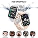 BLUETOOTH CALL & SMART NOTIFICATION: Connect the smart watch with your phone via Bluetooth, you can answer or dial calls anywhere, anytime. The iOS android smart watch will vibrate to remind you when your phone receives SMS and APP messages. Including but not limited to Facebook, Twitter. Never miss any important notification. This gold women smart watch can also control your phone's AI voice assistant, such as Siri Bixby Google.