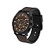 20mm brown leather & silicone combination strap features Quick Release spring bars; 42mm aluminum alloy case with Gorilla Glass; Black ceramic top ring