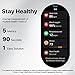 Keeps track of your energy levels, Pulse Ox (this is not a medical device and is not intended for use in the diagnosis or monitoring of any medical condition), respiration, menstrual cycle, stress, sleep, estimated heart, hydration and more