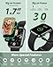 【Smart Life Partner & DIY Background】Multi-functional Smart Watch with 1.7"HD Extra-large full touch screen brings you a unique visual and better interactive experience. You can upload your favorite pictures as your watch faces. It contains many daily useful tools, such as Noise monitoring, Message reminder, Weather forecast, Music control, Stress monitoring, Setting alarms, Stopwatch, timer, Sedentary reminder, Breather guide, Raise to wake, Find phone, adjustable brightness and more.