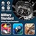 ⌚️【Excellent 5ATM & IP69K Waterproof】- Fully enclosed slim shell designed android smart watch can be immersed in 50m (5ATM waterproof) The military smart watches for men has got through the demanding IP69K rating test, so that you can wear it regarding all day-to-day water sports and activities, such as swimming, diving, surfing and beyond.