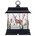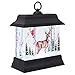 LED Swirl Woodland Winter Deer Dome features lighted interior with spinning motor to keep glitter confetti in constant movement, black exterior and life-like woodland winter scene including deer, cardinals and snowy trees