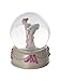 Charming musical snow globe features pink and white striped base with ballet dancer sitting inside the globe; Plays tune Fur Elise