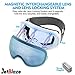 √ INNOVATIVE INTERCHANGEABLE LENS - The extra large spherical lens of ski goggle is secured by 12 points (8 magnets and 4 physical anchors) under a stabilization bezel to offer peripheral view and distortion-free clarity. It stays firmly while you are on the slope, but will pop out easily when lens-switch is needed.