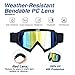 【Safety & Durable】Enhanced PC Lenses and ABS Frame with three layers of sponge. Multi-functions The fiber motorcycle goggles with impact-resistant color PC Lens against wind, dust, dirt, rain, snow, sunlight, and UV rays protect your eyes safe in any outdoor sports.
