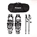 ❄【IMPROVED CRAMPONS】- This sharp crampons is made of high quality aluminum, which gives an excellent grip in snowfield or ice, keep you from dangerous.