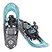 24.5" x 8.5", 3.9lbs per pair, recommended for snowshoers up to 165lbs, designed for women's shorter, more narrow stride. Best on packed snow and trail conditions