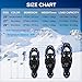 【FULL ADJUSTABLE】Double ratcheting retainers easily adjust to most footwear requiring a quick pull on webbing and heel adjustment. What's more, the aluminum teeth of the heel strap and crampons provide greater traction and comfort on snow and mild terrain, ideal for winter hikes on trails and forests.