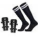 【High Comfort & Great Elasticity】- The powerful soccer training Shin Guards are created with high strength PP shell which helps reducing impact on leg bones and muscle effectively; EVA backing and multiple breather holes design for high comfort and high breathability. The Soccer Socks made by 95% cotton and 5% natural latex rubber, good elasticity for improved fit.