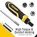 ERGONOMIC RATCHET HANDLE - The handle is rubberized and the Unique non-slip ergonomic ratchet driver is designed for comfortable press and rotation. The ratchet is easily adjusted between three settings using the black color on the handle. Left ratchet, fixed and right ratchet