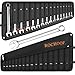 【ROLLING POUCH ORGANIZER & DOUBLE SIZE MARK】: The standard wrench set is equipped with a Rolling Pouch for easy organization and storage,and easy to carry. While each size is engraved on the wrench, it is also printed on the bag for easy identification and storage, saving you time and improving work efficiency.