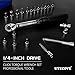 72-TOOTH GEAR - Reinforced, Hardened & Heat-treated ratchet head; constructed from Chrome-Molybdenum alloy steel. The Quick-Release Button Mechanism allows secure fit as well as rapid socket swap.