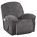 GREAT FIT: This innovated 1 Piece recliner chair couch cover is crafted from luxurious velvet plush fabric. Suitable for both manual and electric recliners. Fit back circumference 78 Inches to 88 Inches and sitting width between 24-33 inch. with right side handle, pocket and continuous footrest. The seat has two elastic loops at the back corners to be pulled through to the back of the recliner