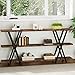 【Unique Design】X-shaped structure ensure the strong load stability, no any wobbling problem when freestanding on the floor. Wooden finish mixed with black metal frame creates a rustic style. This sofa table is right at home in both farmhouse and industrial decor schemes.