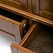 Features four bottom drawers with shaker style fronts, metal drawer glides and large open shelf for decorative storage