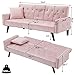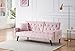 Elegant and Stylish : This pink loveseat futon sofa couch is all about details. It is designed with tufted backrest,cushion and armrest in diamond pattern. Also the silver nailhead trim decor along with the black finish legs not only add color contrast effect into this velvet futon,they also make a very modern mid century and sophisticated statement for this small sleeper sofa bed.