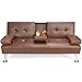 【THOUGHTFUL DESIGN】: The leather sofa bed is well designed for entertainment. The middle armrest folds down with 2 cup holders, so you and your friend can relax and enjoy a couple of beverages.