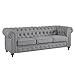 LUXURIOUS COMFORT: Envelop yourself in the rich embrace of our modern PU Leather Chesterfield settee, lovingly adorned with deep button tufting across the backrest, armrests, and seating. The Gray living room sofa's tufting allows for gentle breathing space as you unwind, providing a serene and comforting experience.