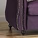 Antique styling with a luxe edge meet your new furniture crush; an opulent velvet Loveseat sofa in rich Blackberry. The bold baroque aesthetic is highlighted by refined traditional details that the true connoisseur will recognize, including elegant scroll arms, Classic tufting, Rivet Studs, and sensual turned legs that would make the Victorians blush. Dimensions (inches): 30. 50 D, 51. 50 W, 30. 75 H. Seat: 22. 00 D, 37. 25 W, 17. 50 H