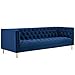 RETRO MODERN SOFA - With gold stainless steel legs effortlessly complementing the rich velvet texture, this sofa is a chic focal point with its balanced blend of vintage style and modern flair