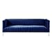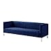 MODERN GLAM: Our sofa showcases a luxurious tuxedo arm design and elegant channel stitching that pair seamlessly with rounded edges and smooth velvet for a luxurious modern glam look. Complemented with beautifully turned legs, this sofa brings a sleek touch to any decor.