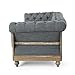The tufting along the back and arm and tapered legs finished in matte black offer an extra touch of sophistication that add charm to the overall design