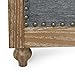 Plush Grey fabric upholstery is accented by beautiful Antique brown nail head trim