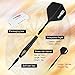 🎁Unlike other darts sets, our bundle features beautifully crafted barrels with full grip texture which allows any finger placement rather than forcing a front or rear loaded grip, 12 Precision Cut Aluminum Shafts for maximum grip of flights + 20 rubber O-rings to prevent loosening, 24 Polypro Flights (Standard) for a stable flight path, Flight protector and Dart multi-use tool.
