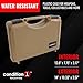 WATER RESISTANT AND DUST PROOF CASE: The handgun carrying case is dust and water resistant. The hard protective case resists damage to the patina or barrel caused by water spills, rain showers, mist, moisture, and dust.