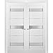 ✔️ SET INCLUDES- 2 doors with lites 24x96 each with Frosted Glass, trims 2.95 inches width, frames (for wall up to 5 inches), non-mortise hinges, passage Satin Nickel square door handle/knobs. Size shows the actual door slab dimenstions