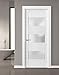✔️ SET INCLUDES- white door with 3 lites glass, trims 2.95 in wide, frames (for wall up to 5 inches), non-mortise hinges, passage Satin Nickel square door handle/knob.