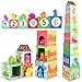 🔠【Montessori Baby Toys】It can naturally develop babies' problem-solving abilities and cognitive skills at a young age. Each baby blocks have embossed numbers, animals, shapes, fruits, alphabets, and symbols on side that toddlers can learn counting, color, match, and identify. Stacking rings toys connect easily to help develop hand-eye coordination, and fine motor skills.