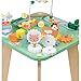 7 FUN ACTIVITIES ON A STURDY WOOD TABLE - This all-wood activity table has a playfully-patterned top with 6 farm friends and 7 activities to help your baby learn about shapes, sounds, and more. Play the xylophone, stack the shapes, guide the duck along the maze, twist the gears, and push the beads along the buzzing bee wire path.