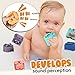 EXPLORE SENSORY BIN: These Montessori toys for 1 2 3 year old consists of a cube with colored elastic bands and 5 blocks of different textures colors and shapes. 5 of the blocks can not only be used as bath toys, but also make a crisp ringing sound by shaking, which is very tempting. Baby can train their grip by putting the blocks into or taking them out of the cube, enhancing their sense of space, awakening their curiosity and helping them explore and experiment. Amazing sensory toys.