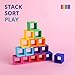 Sort, Stack and Play - Soft, durable, and easy to clean, our food-grade silicone building blocks are the perfect open ended Montessori rainbow toy for children that love to sort, stack, chew, and knock things down.