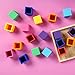Product Size - Our 16-piece vibrant rainbow toy blocks are recommended for children three years and up. Each block measures 1.37 x 1.37 inches and comes with a 6 x 6 inch natural bamboo storage/sorting tray.