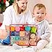 Teething & Squeezing Toys: Our infant toys are soft and chewable, providing relief for teething babies. They are the perfect gift for 0-3-6-12 month teething babies. The soft blocks are easy to squeeze and produce a pleasing squeaking sound, capturing your baby's attention and contributing to their hearing development. The stacking blocks and rings are securely connected, allowing every child to enjoy these soft sensory toys for fun while improving hand-eye coordination and promoting motor skills.