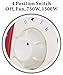 4-position function switch for off, fan only, low heat, or high heat