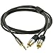 3.5MM TO 2X RCA CONNECTORS: 3.5mm Male connector on one end and two Male RCA connectors on the other end