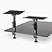 Adjustable. Height adjusts from 9″ to 12.5″ and the platform angle adjusts 15 degrees to enable precise sound direction and imaging for a wide range of speakers on a variety of desks, tables, and workstations.