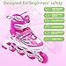 √8 WHEELS ILLUMINATING - Our inline skates for kids come with four illuminating wheels that lights up automatically when you start to skate. The lights are powered by wheels rolling and never need replacement batteries! Just imagine how cool it will be to flash as bright as a lighting bolt in the dark!