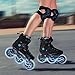【SECURE CLOSURE SYSTEM】Triple protection, the adult inline skates have a safety buckle, fine-tuning safety buckle, lace closure system provide a secure fit that easy to use and create an additional wrapping effect, Help fasten the feet properly into the unisex inline skates to improve skating performance.