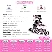 ✅【ADJUSTABLE INLINE SKATES FOR ALL AGE】 -This unisex inline skates for kids and adults has 4 different size: S/M/L/XL and each size is adjustable up to 4 shoes sizes. And do not forget to adjust the length of boot by the push button before wearing, you will find that it's so convenient to operate, and kids and youth can use it for many years even though their feet are growing up