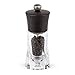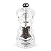 Coarse Ground Pepper Mill: The clear acrylic mill with stainless steel finishes are easy to refill