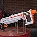 ADJUSTABLE VELOCITY: You’re in control of the power! Two barrels are included to adjust your velocity (White: Maximum, Orange, Minimum). If you’re battling a newbie and want less sting, you can drop the velocity to as low as 90 Feet Per Second with the Orange barrel. For more intensity, you can increase your velocity up to 170 feet per second and shoot over 100 Feet using the White barrel (pre-installed)!