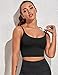 Built in Bra Tank Tops for Women Strappy Back Sports Bra Black Crop Top. Sexy longline sports bras for women padded cropped tank top is perfect to wear with shorts and leggings for daily wear or exercise. Just enjoy your all activities with black sports bra athletic tank tops for women that perfect for your high-waist pants. Workout tank tops fitness running shirts for women that can be also as comfy sleep bra cute crop tops for women are a must-have in your wardrobe!